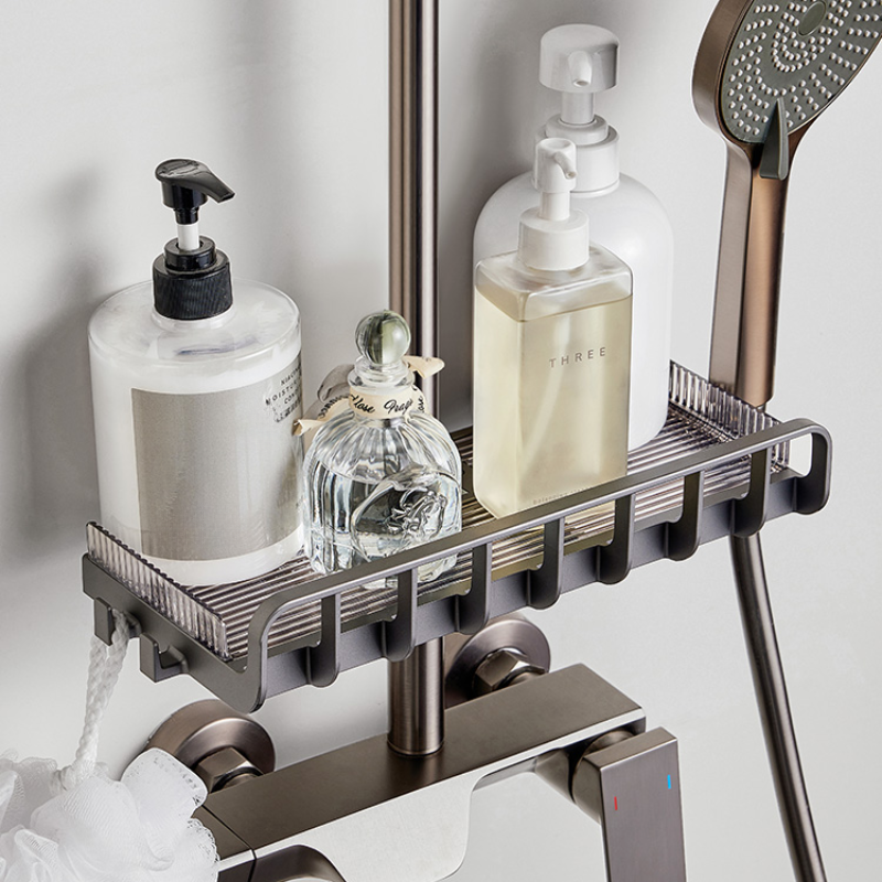 The shelf height can be easily adjusted. and it includes additional hooks for hanging towels. sponges. and other accessories. keeping your shower area neat and organized.
