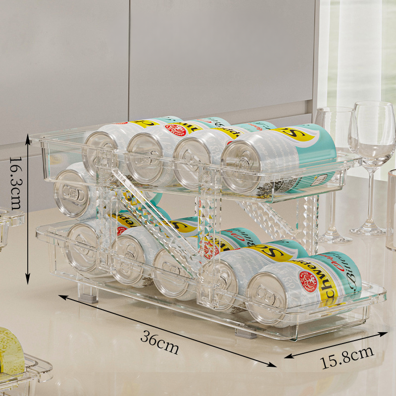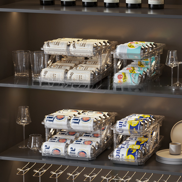 Our organizer features a creative sloped design that automatically rolls the next can forward as one is taken. This innovative feature ensures that your beverages are always accessible and makes retrieval both fun and effortless.